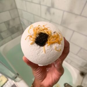The Self Soothe is a crystal bath bomb promoting a sense of calmness, relieving stress, while soothing your muscles. The Self Soothe crystal bath bomb was inspired to balance the mind, body and spirit hence promoting the ultimate soothe of all aspects of your being. The therapeutic notes of the sweet eucalyptus and lavender bath bomb is infused with a tourmaline crystal. The tourmaline healing crystal promotes relaxation, grounding, spiritual protection, and is recognized as the stone of purification. The calendula petals are topped on the bath bomb to assist in channeling in positive energies and is also considered the herb of love and master healer.